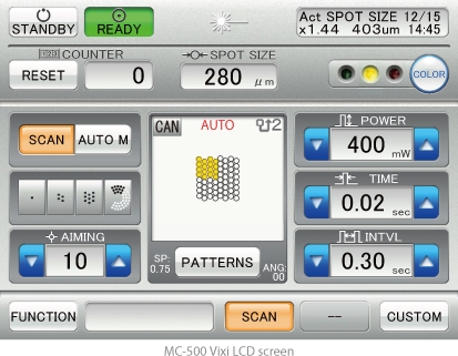 Intuitive graphic user interface and easy-to-read color LCD touch screen allows easy and quick setup and confirmation of the scan pattern and treatment parameters.