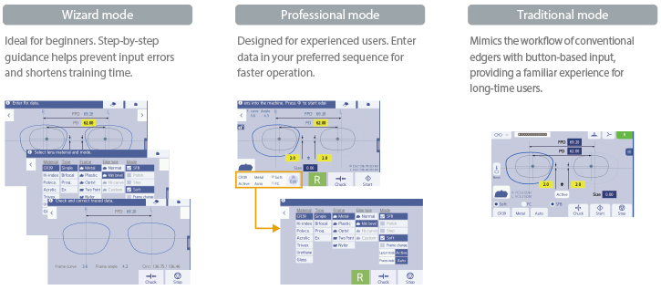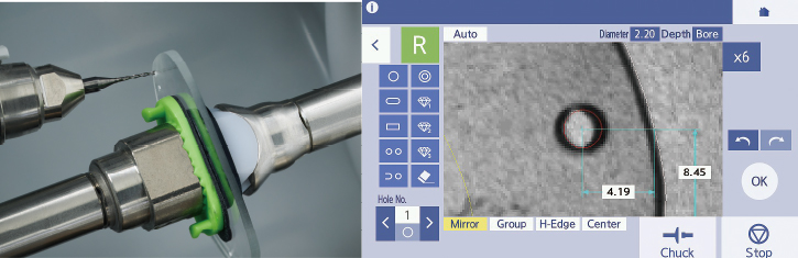 Supports a wide range of frame styles with multiple hole type options. Drilling angles can be set automatically or manually for optimal precision. The hole editing screen offers up to 6x magnification, allowing for easy and accurate data adjustments.
