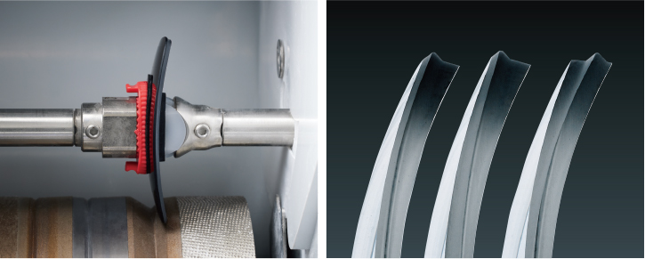 Bevel height and width can be freely adjusted to suit the frame material and rim profile. Front and rear bevels are ground independently, minimizing interference with the grinding wheel and ensuring a high-quality bevel profile finish.